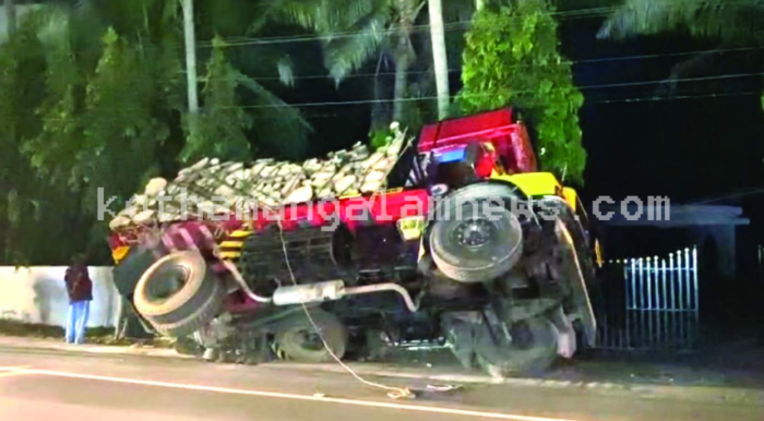 കോതമംഗലം: ദേശീയപാതയില് കോതമംഗലം ശോഭനപ്പടിയില് തടി ലോറി കോണ്ക്രീറ്റ് സ്ലാബ് തകര്ന്ന് സമീപത്തെ പുരയിടത്തിലേക്ക് മറിഞ്ഞു. റോഡരികില് ഓടയുടെ മുകളിലായി പാര്ക്ക് ചെയ്തിരുന്ന തടി ലോറി അപകടത്തില്പ്പെട്ടതിനെ തുടര്ന്ന് സമീപത്തെ വീടിന്റെ മതിലും തകര്ന്നു. ബുധനാഴ്ച സന്ധ്യക്കാണ് തടികയറ്റിയ ലോറി അപകടത്തില്പ്പെട്ടത്.