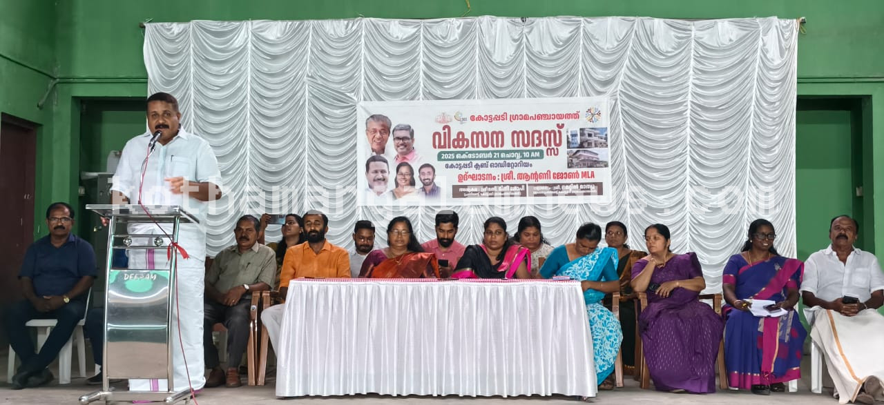 കോതമംഗലം :കോട്ടപ്പടി ഗ്രാമപഞ്ചായത്തിൽ വികസന സദസ്സ് സംഘടിപ്പിച്ചു. ഉദ്ഘാടനം ആന്റണി ജോൺ എം എൽ എ നിർവഹിച്ചു. പഞ്ചായത്ത് പ്രസിഡന്റ് മിനി ഗോപി അധ്യക്ഷത വഹിച്ച ചടങ്ങിൽ പഞ്ചായത്ത് വൈസ് പ്രസിഡന്റ് മെറ്റിൻ മാത്യു സ്വാഗതം ആശംസിച്ചു. പഞ്ചായത്ത് സെക്രട്ടറി ജയശ്രീ ആർ റിപ്പോർട്ട് അവതരിപ്പിച്ചു. ക്ഷേമകാര്യ സ്റ്റാൻഡിങ് കമ്മിറ്റി ചെയർമാൻ സണ്ണി വർഗീസ്, ആരോഗ്യ – വിദ്യാഭ്യാസ സ്റ്റാൻഡിങ് കമ്മിറ്റി ചെയർപേഴ്സൺ സാറാമ്മ ജോൺ, പഞ്ചായത്ത് അംഗങ്ങളായ സന്തോഷ് അയ്യപ്പൻ, നിധിൻ മോഹനൻ, അമൽ വിശ്വം, ശ്രീജ സന്തോഷ്, ബിജി പി ഐസക്, മെഡിക്കൽ ഓഫീസർ ഡോ. ഗിരീഷ്, വെറ്റിനറി ഡോ. എൽദോസ്, കൃഷി ഓഫീസർ ജിജി, ഐ സി ഡി എസ് സൂപ്പർവൈസർ അനുപ്രിയ, പബ്ലിക് റിലേഷൻ വകുപ്പ് റിസോഴ്സ് പേഴ്സണൽ രാജീവ് എ റ്റി എന്നിവർ സംസാരിച്ചു. വികസനകാര്യ സ്റ്റാൻഡിങ് കമ്മിറ്റി ചെയർപേഴ്സൺ ജിജി സജീവ് കൃതജ്ഞത അറിയിച്ചു. വികസന സദസ്സിനു മുന്നോടിയായി കോട്ടപ്പടിയിൽ നൂറുകണക്കിന് പേർ പങ്കെടുത്ത ഘോഷയാത്രയും സംഘടിപ്പിച്ചിരുന്നു.