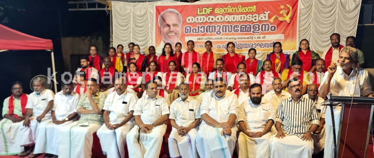 നഗരസഭ തെരഞ്ഞെടുപ്പ് കമ്മിറ്റി ചെയർമാൻ മാർട്ടിൻ സണ്ണി അധ്യക്ഷനായി. ആന്റണി ജോൺ എംഎൽഎ, സിപിഐ സംസ്ഥാന കൗൺസിൽ അംഗം ഇ കെ ശിവൻ, സിപിഐഎം ജില്ലാ സെക്രട്ടറിയറ്റ് അംഗം ആർ അനിൽകുമാർ, ഏരിയ സെക്രട്ടറി കെ എ ജോയി, കേരള കോൺഗ്രസ് എം ജില്ലാ പ്രസിഡന്റ് ടോമി ജോസഫ്, തെരഞ്ഞെടുപ്പ് കമ്മിറ്റി സെക്രട്ടറി കെ ടി മോഹനൻ, എം എസ് ജോർജ്, പി കെ രാജേഷ് തുടങ്ങിയവർ സംസാരിച്ചു.