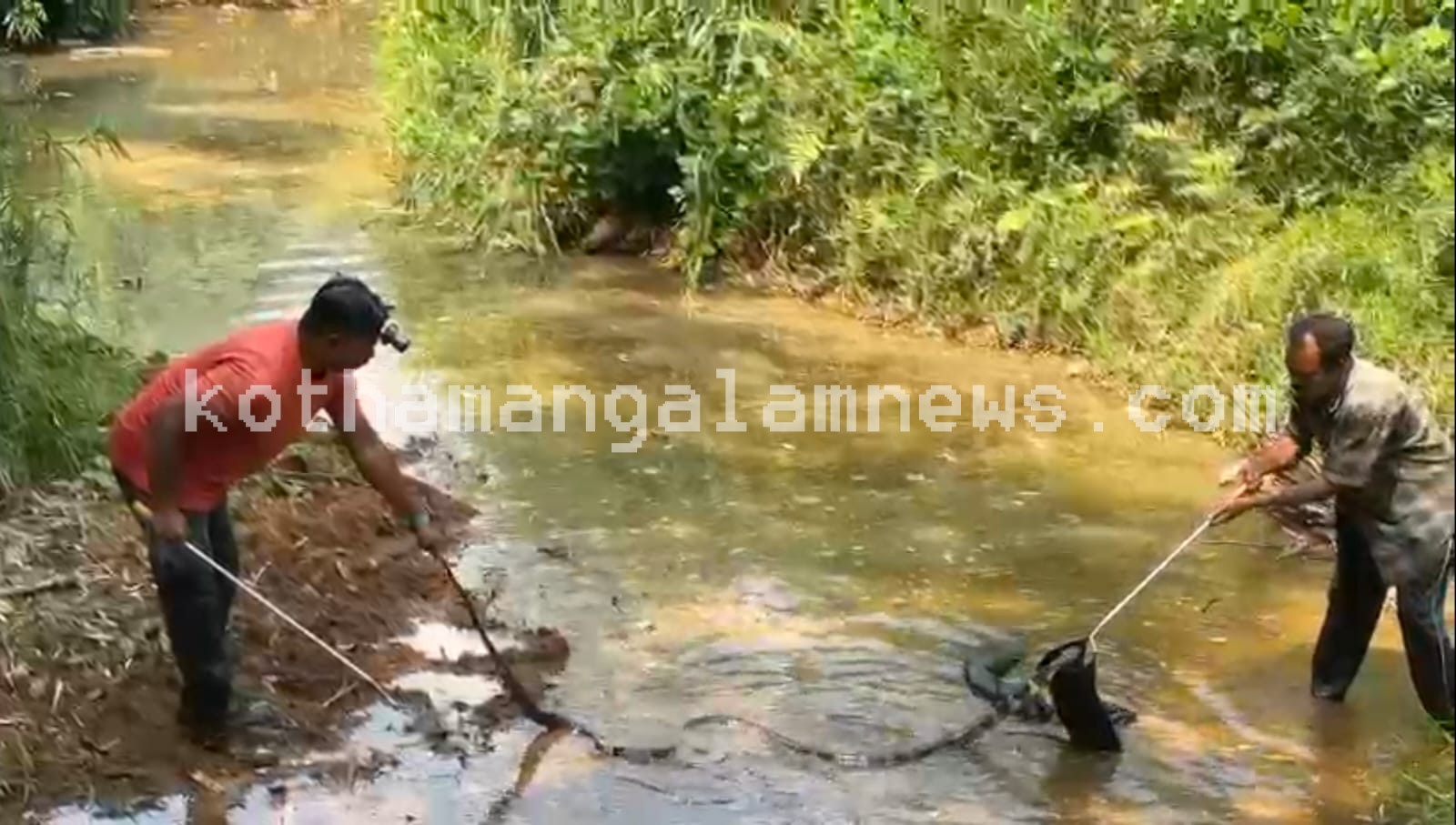 കോതമംഗലം: പിണ്ടിമന പഞ്ചായത്തിലെ വേട്ടാമ്പാറയില് നിന്ന് കൂറ്റന് രാജവെമ്പാലയെ പിടികൂടി. പടിപ്പാറ ഭാഗത്ത് സ്വകാര്യ വ്യക്തിയുടെ റബ്ബര് തോട്ടത്തില് ഉച്ചയോടെയാണ് രാജവെമ്പാലയെ ആദ്യം കണ്ടത്. പാമ്പുപിടുത്ത വിദഗ്ദ്ധന് ജുവല് ജൂഡി സ്ഥലത്തെത്തിയപ്പോഴേക്കും പാമ്പ് സമീപത്തുള്ള തോട്ടിലൊളിക്കുകയായിരുന്നു. വെള്ളത്തില് നീന്തിത്തുടിച്ച രാജവെമ്പാലയെ ജുവല് കൈപ്പിടിയിലാക്കിയെങ്കിലും സഞ്ചിയില് കയറാന് കൂട്ടാക്കിയില്ല. തുടര്ന്ന് ഏറെ നേരത്തെ പരിശ്രമത്തിനൊടുവില് അതിസാഹസികമായി പാമ്പിനെ കൂട്ടിലാക്കുകയായിരുന്നു.