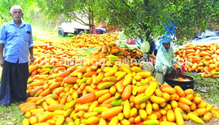 പോത്താനിക്കാട്: തെക്കേപുന്നമറ്റം പുള്ളോലില്‍ ജേക്കബ് ഈ വര്‍ഷവും ഏഴ് ടണ്‍ കണിവെള്ളരിക്ക ഉല്‍പ്പാദിപ്പിച്ച് വിറ്റഴിച്ച് നാട്ടില്‍ താരമായി. മികച്ച പച്ചക്കറി കര്‍ഷകനായി സംസ്ഥാന തലത്തിലും ജില്ലാ തലത്തിലും നിരവധി പുരസ്‌കാരങ്ങള്‍ നേടിയിട്ടുള്ള ജേക്കബ് പോത്താനിക്കാട് കാര്‍ഷിക വിപണിയിലേക്ക് മാത്രം രണ്ട് ടണ്‍ വെള്ളരിക്ക ഇന്നലെ വില്‍പ്പനയ്ക്കായി എത്തിച്ചു.