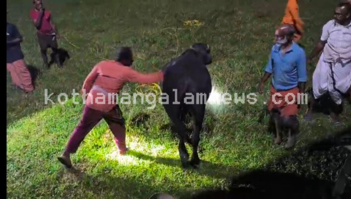 കോതമംഗലം : കോട്ടപ്പടി മൂന്നാംതോട് സാബു തോമസിന്റെ ഫൗണ്ടേഷൻ എന്ന സ്ഥാപനത്തിലെ കെട്ടിടത്തിന്റെ മൂന്നാം നിലയിൽ കുടുങ്ങിയ പോത്തിനെ കോതമംഗലം അഗ്നിരക്ഷാസേന അതിസാഹസികമായി രക്ഷപ്പെടുത്തി. സീനിയർ ഫയർ ആൻഡ് റെസ്ക്യൂ ഓഫീസർ പി എം റഷീദിന്റെ നേതൃത്വത്തിൽ ഫയർമാൻമാരായ ഒ എ ആബിദ്,സൽമാൻ ഖാൻ, അജ്നാസ് വി എച്ച്, അംജിത്ത്, കെ പി ഷമീർ, ബേസിൽ ഷാജി, ഹോം ഗാർഡ് ജിയോബിൻ എന്നിവരടങ്ങിയ സംഘം അതിസാഹസികമായി റോപ്പ് റോസ് എന്നിവ ഉപയോഗിച്ച് ബന്ദിച്ച് പോത്തിനെ മൂന്നാം നിലയിൽ നിന്നും താഴെ ഇറക്കി.