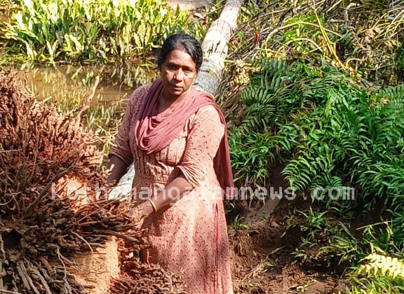 പടം : പിണവൂർ കുടിയിൽ കാട്ടാനകൂട്ടം നശിപ്പിച്ച കാഞ്ഞിരത്തിങ്കൽ സുശീല മോഹനൻ്റെ പുരയിടം