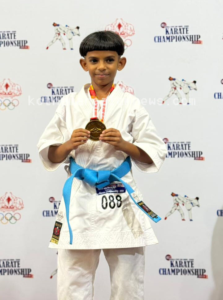 കോതമംഗലം : തൃശൂരിൽ നടന്ന 46-ാം മത് കേരള കരാട്ടെ ചാമ്പ്യൻഷിപ്പിൽ കോതമംഗലം സ്വദേശിനിയായ മരിയ ബിനേഷിന് സ്വർണമെഡൽ . ഫെബ്രുവരി 15 ,16 തിയതികളിൽ തൃശൂർ വി.കെ.എൻ മേനോൻ ഇൻഡോർ സ്റ്റേഡിയത്തിൽ ,കേരള സ്പോർട്സ് കൗൺസിലിന്റെയും, കേരള ഒളിംമ്പിക് അസോസിയേഷൻന്റെ യും നേതൃത്വത്തിൽ കേരള കരാട്ടെ അസോസിയേഷൻ നടത്തിയ സംസ്ഥാന കരാട്ടെ ചാമ്പ്യൻഷിപ്പിലാണ് ഒൻപതു വയസുള്ള പെൺകുട്ടികളുടെ കത്ത വിഭാഗത്തിൽ ആണ് കോതമംഗലം റിയുക്യു ഷിറ്റോ റിയു കരാട്ടെ സ്കൂളിൽ പരിശീലനം ചെയ്യുന്ന മരിയ ബിനേഷ് സ്വർണ്ണ മെഡൽ നേടിയത്. മുൻ സംസ്ഥാന കരാട്ടെ ചാമ്പ്യൻ ആയ ബിനേഷ് ജോസ് ആണ് പരിശീലകൻ.നെല്ലിമറ്റം സെൻറ് ജോസഫ് യു.പി സ്കൂൾ മൂന്നാം ക്ലാസ്സ് വിദ്യാർത്ഥിനിയാണ്.
