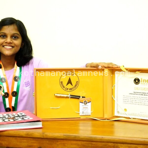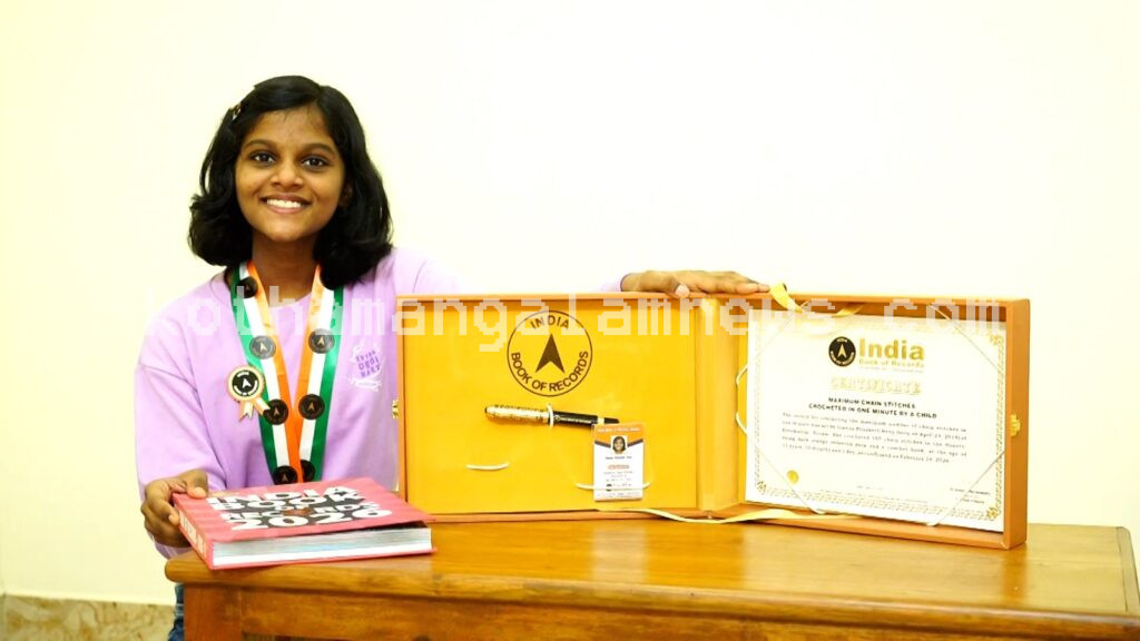 കോതമംഗലം: വിരല്‍തുമ്പുകളില്‍ നൂലിഴകള്‍ കൊണ്ട് വിസ്മയം തീര്‍ക്കുന്ന പിന്നല്‍ കലയില്‍ പുതിയൊരു ചരിത്രമെഴുതി വാരപ്പെട്ടിയിലെ കൊച്ചു മിടുക്കി. ഒരു മിനിറ്റിനുള്ളില്‍ 105 ക്രോച്ചേ സ്റ്റിച്ചുകള്‍ പൂര്‍ത്തിയാക്കി ഇന്ത്യന്‍ ബുക്ക് ഓഫ് റെക്കോര്‍ഡ്‌സില്‍ ഇടം...