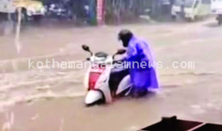 വെ​ള്ള​ക്കെ​ട്ടി​ലൂ​ടെ വ​ലി​യ വാ​ഹ​ന​ങ്ങ​ള്‍ ക​ട​ന്നു പോ​കു​മ്പോ​ഴു​ണ്ടാ​കു​ന്ന ഓ​ള​ത്തി​ല്‍ നി​ര​വ​ധി ഇ​രു​ച​ക്ര​വാ​ഹ​ന​ങ്ങ​ള്‍ ഓ​ട്ടം നി​ല​ച്ച് വെ​ള്ള​ത്തി​ലാ​യി. കോ​ടി​ക​ള്‍ മു​ട​ക്കി വീ​തി​കൂ​ട്ടി ന​വീ​ക​രി​ച്ച ഓ​ട​യി​ല്‍ മാ​ലി​ന്യം കെ​ട്ടി​ക്കി​ട​ന്നാ​ണ് ഒ​ഴു​ക്ക് ത​ട​സ​പ്പെ​ട്ട​ത്. ടൗ​ണി​ല്‍ 200 മീ​റ്റ​റോ​ളം ഭാ​ഗ​ത്ത് പെ​യ്ത്ത് വെ​ള്ളം മു​ഴു​വ​ന്‍ റോ​ഡി​ലാ​യ​തോ​ടെ ഒ​ന്ന​ര മ​ണി​ക്കൂ​റോ​ളം ടൗ​ണി​ലൂ​ടെ​യു​ള്ള ഗ​താ​ഗ​ത​ത്തെ സാ​ര​മാ​യി ബാ​ധി​ച്ചു. മ​ഴ മാ​റി കു​റെ നേ​രം പി​ന്നി​ട്ടാ​ണ് വെ​ള്ളം ഇ​റ​ങ്ങി പൂ​ര്‍​വ​സ്ഥി​തി​യി​ലാ​യ​ത്. കോ​ത​മം​ഗ​ലം താ​ലൂ​ക്ക് ആ​ശു​പ​ത്രി​ക്ക് മു​ന്നി​ലും ക​ഴി​ഞ്ഞ ദി​വ​സം സ​മാ​ന രീ​തി​യി​ൽ വെ​ള്ള​ക്കെ​ട്ട് ഉ​ണ്ടാ​യി.